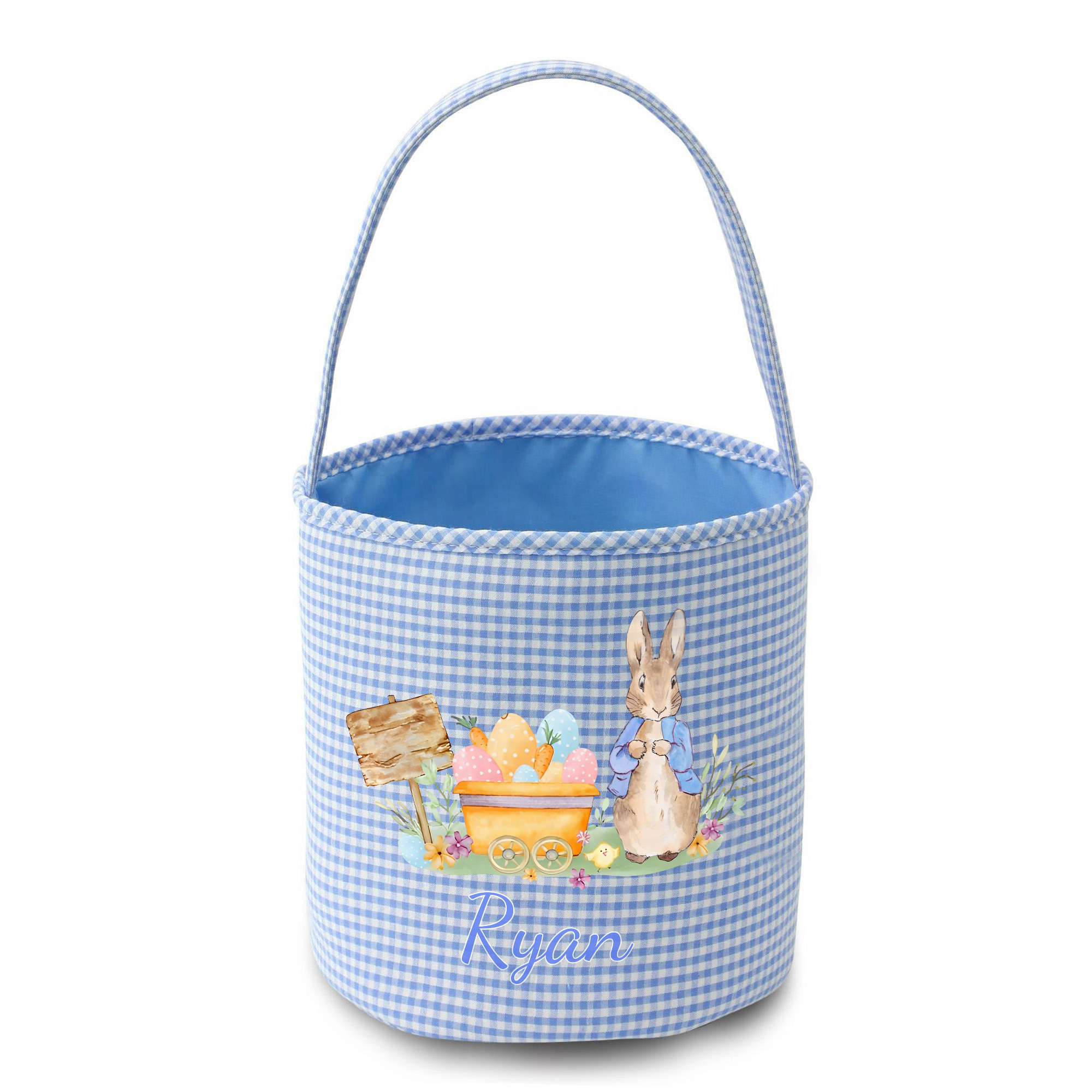 | Style | Personalized Name Peter Rabbit & Colorful Eggs Gingham Easter Basket |